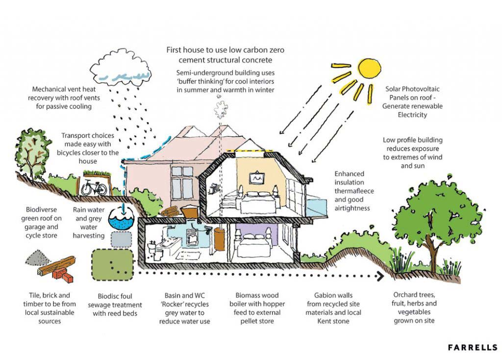Section Sketch of Goudhurst Eco House in Kent Village, England by Farrells Architects